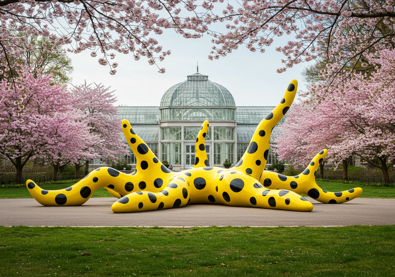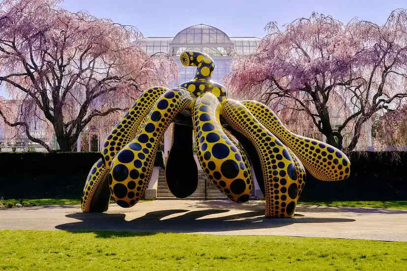 Yayoi Kusama’s “Dancing Pumpkin” (2020) in the exhibition “Kusama: Cosmic Nature” at the New York Botanical Garden. Credit: Heather Sten for The New York Times.
